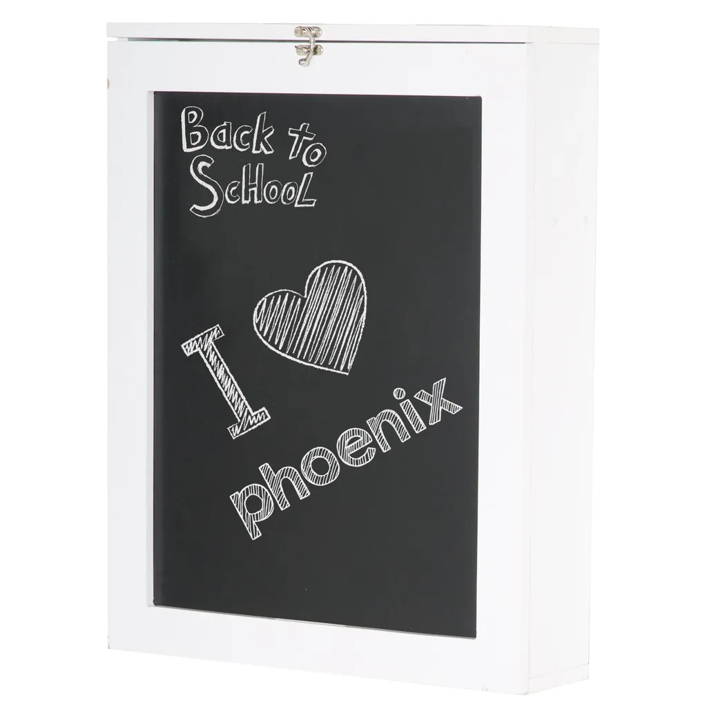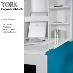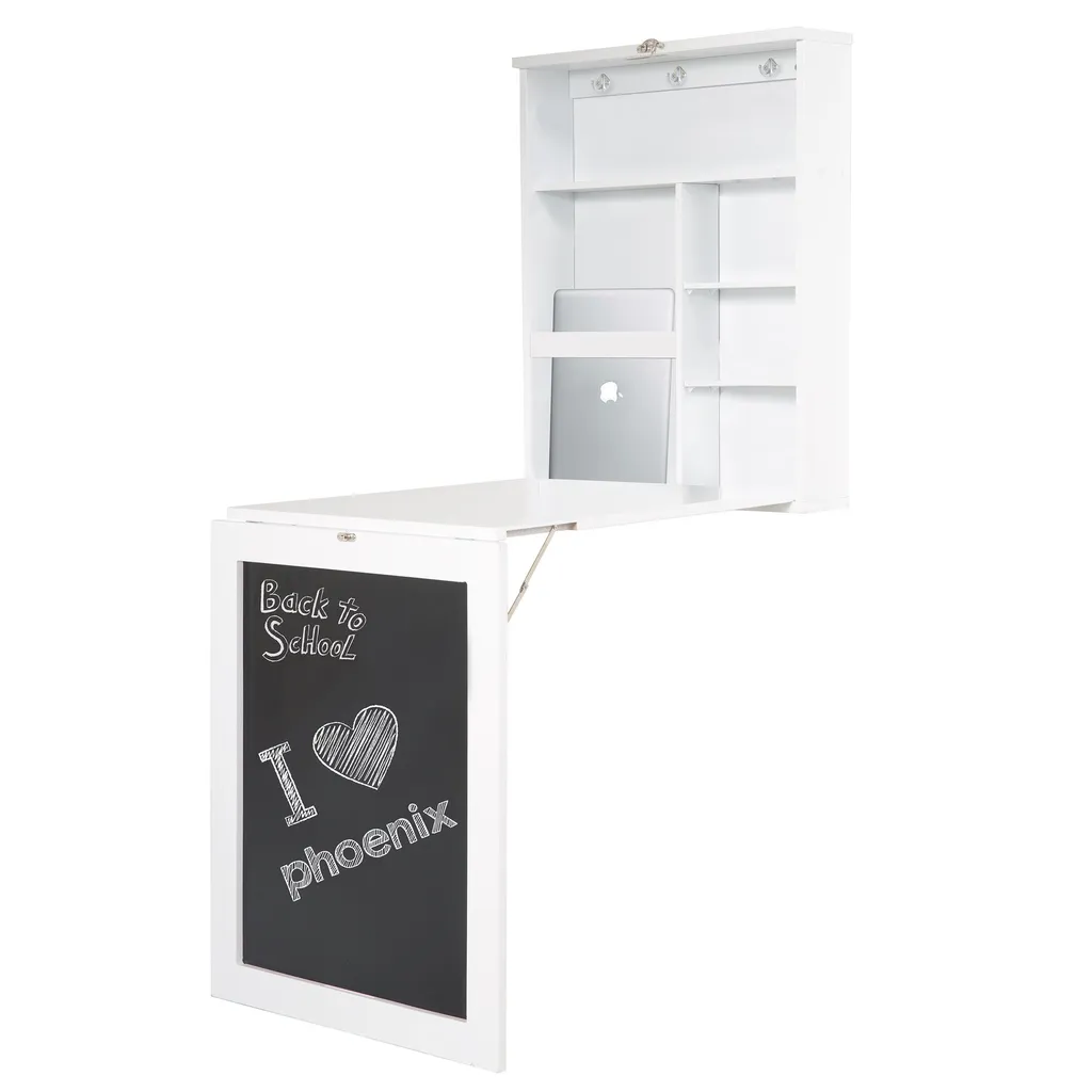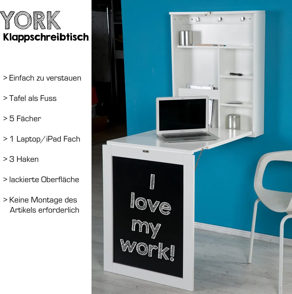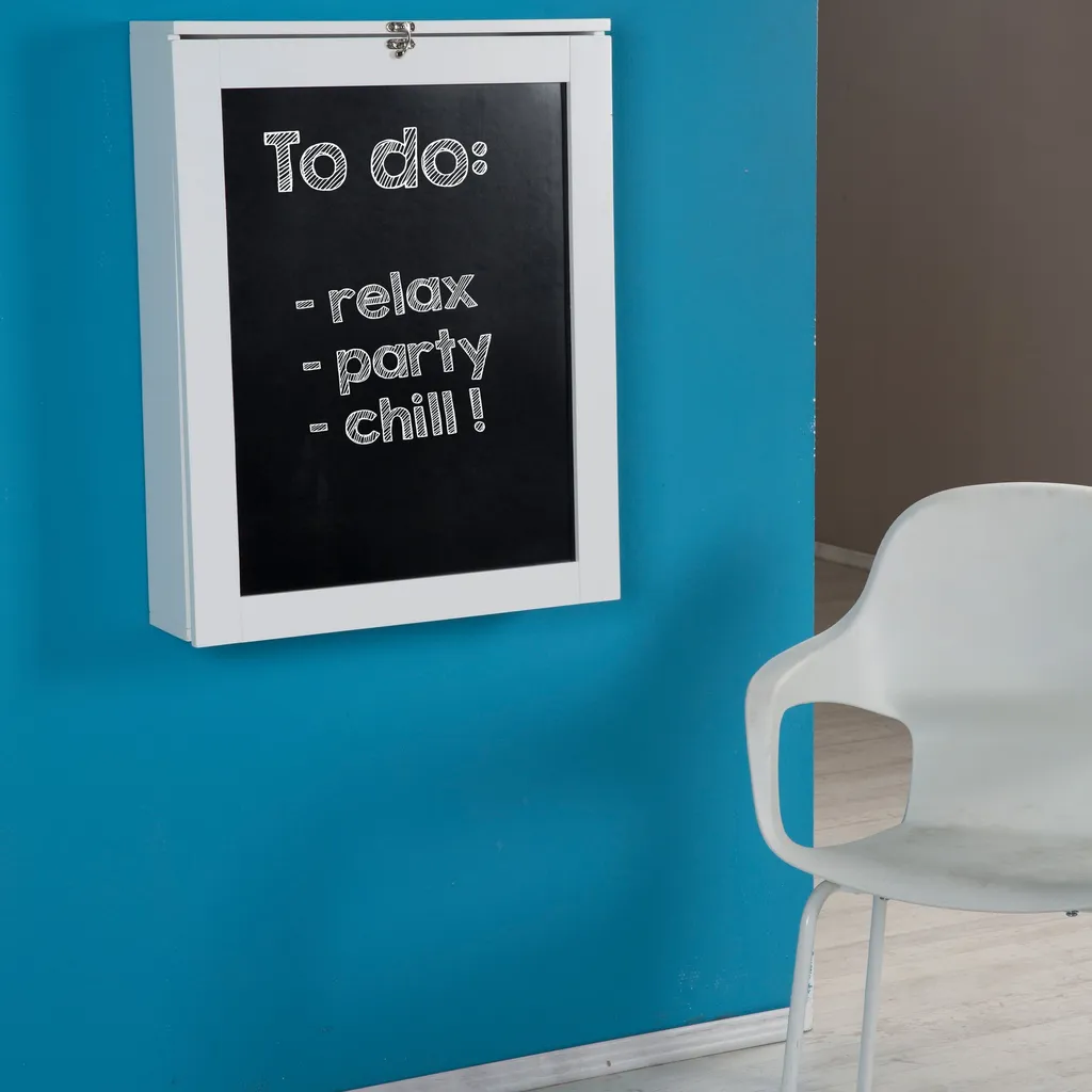 Dieser kleiner, praktischer Platzsparer kann als Schreibtisch, Regal, Küchentisch, Tresen, Ablage oder als Memoboard verwendet werden. Der schöne Alleskönner wird fertig montiert geliefert und muss lediglich an der Wand befestigt werden. Durch die 3 kleinen Fächer, 1 Laptop oder Zeitungsfach sowie einer breiten Ablage mit 3 Haken bietet der Klapptisch viel Stauraum. Sobald der Tisch nicht mehr benötigt wird, kann dieser einfach eingeklappt und mit dem kleinen Metallverschluss verschlossen werden. Die Tafel kann jederzeit mit einem feuchten Schwamm gereinigt werden und mit einfacher Kreide neu beschriftet werden. Das Möbelstück ist in einem zeitlosen Weiss lackiert. Der moderne Landhausstil rundet das Design perfekt ab.