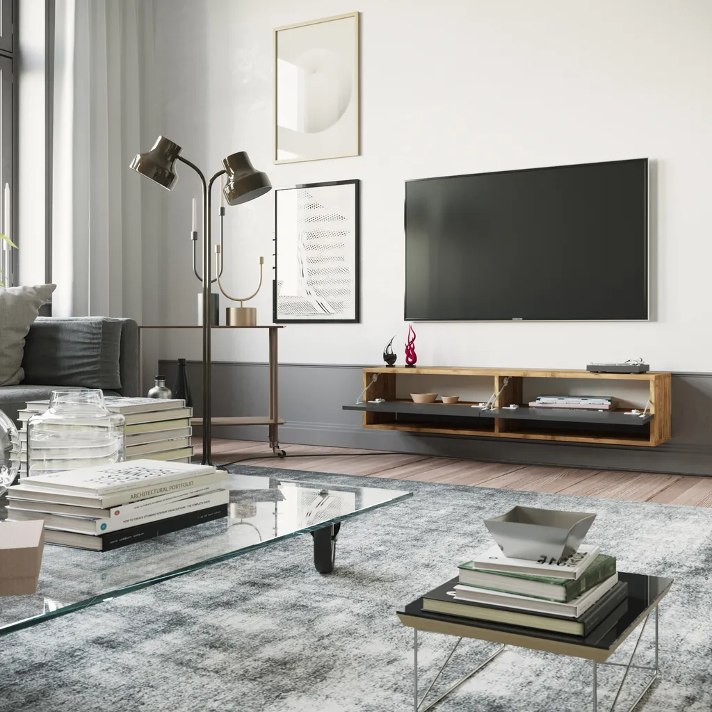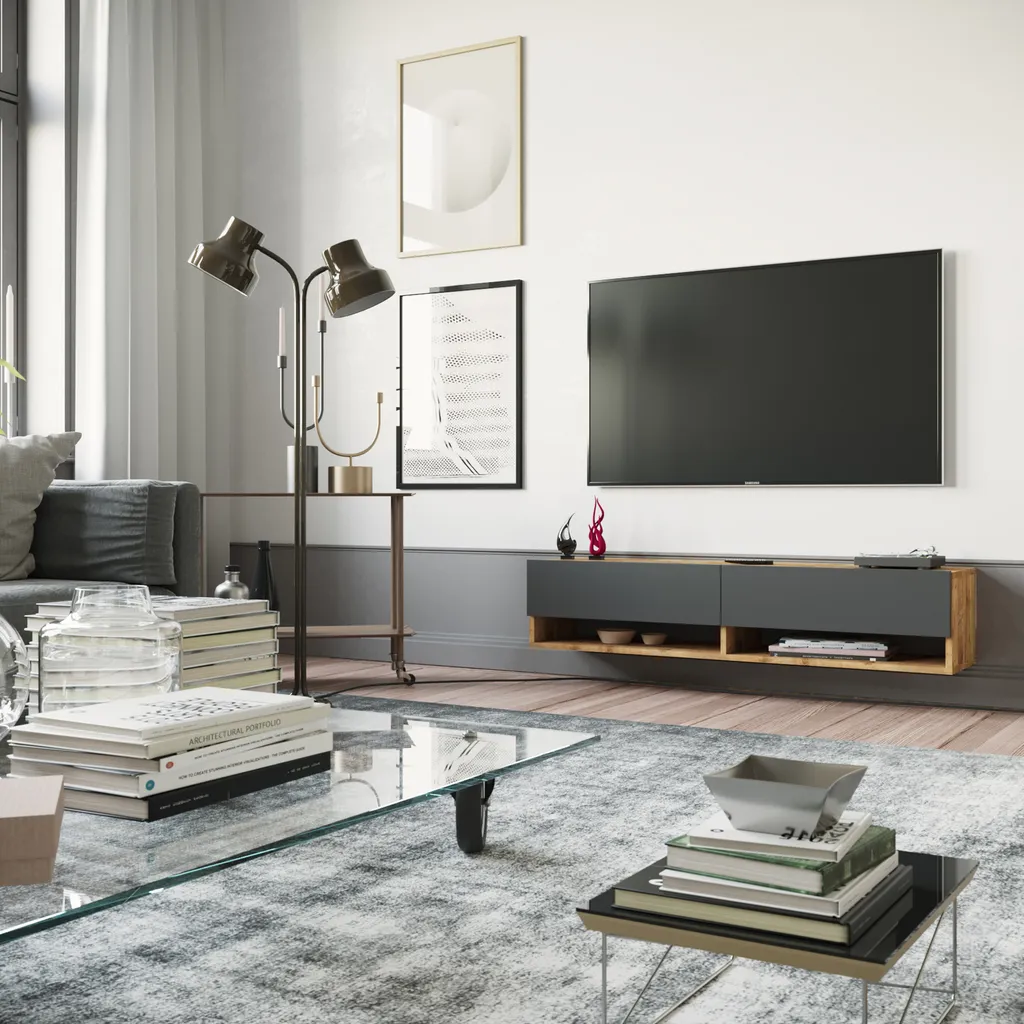 Yurupa TV Board hängend Lowboard Hängeschrank Hängeboard Wohnwand dunkel Anthracite FR11-AA.